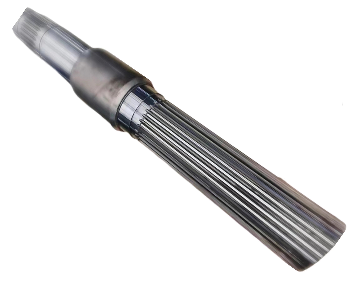 轮轴一般是小齿轮(齿数少的齿轮),运用在高速级(也就是底扭矩级)传动中。聚英机械可以生产大模数的长轴齿轮,应用于大型煤矿及建筑机械类产品。齿轮轴一般很少作为变速的滑移齿轮,一般都是固定运行的齿轮,因为处在高速级,其高速度是不适进行滑移变速的。齿轮轴是轴和齿轮合成一个整体的,但是,在设计时,还是要尽量缩短轴的长度,太长了一是不利于上滚齿机加工,二是轴的支撑太长导致轴要加粗而增加机械强度(如刚性、挠度、抗弯等)。
